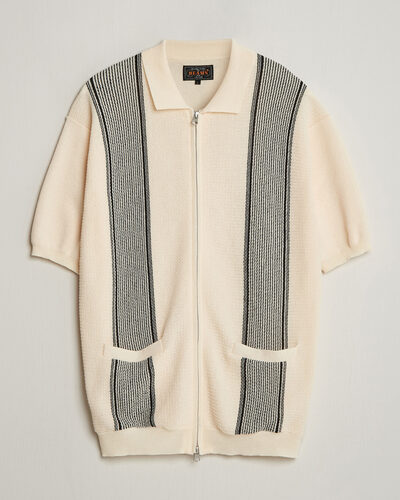Zip Knit Striped Polo Olive