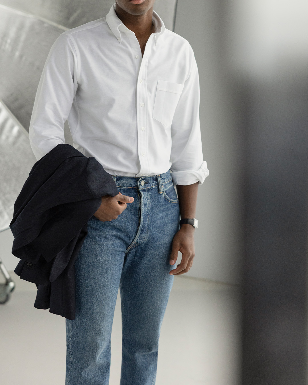 Bland alle valgene vi gjør, er det akkurat fire som går igjen gang på gang: den svarte lofern, rådenim i en rett silhuett, den hvite oxfordskjorten og en strikket genser i en nøytral tone. Sammen danner de et grunnlag som gjør at resten av plaggene rundt er ganske enkle å velge ut.