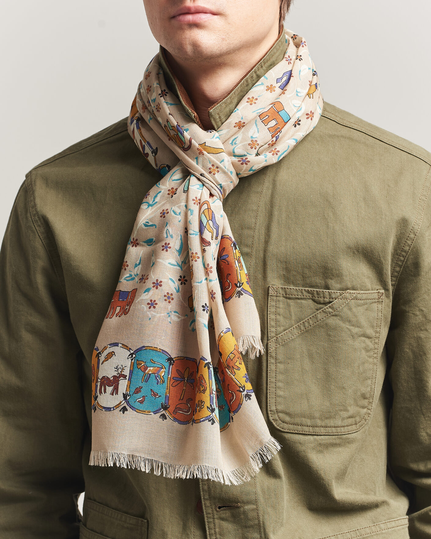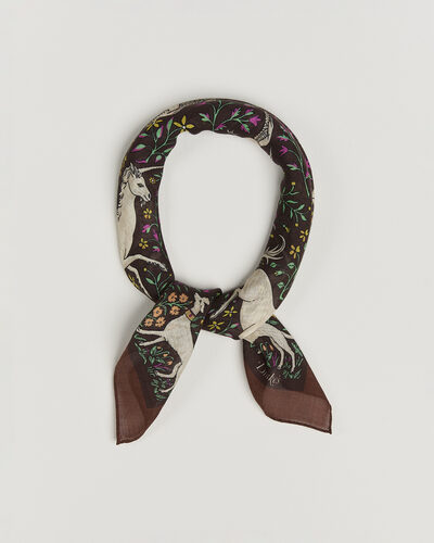 Unicorn Print Wool/Silk Bandana Brown