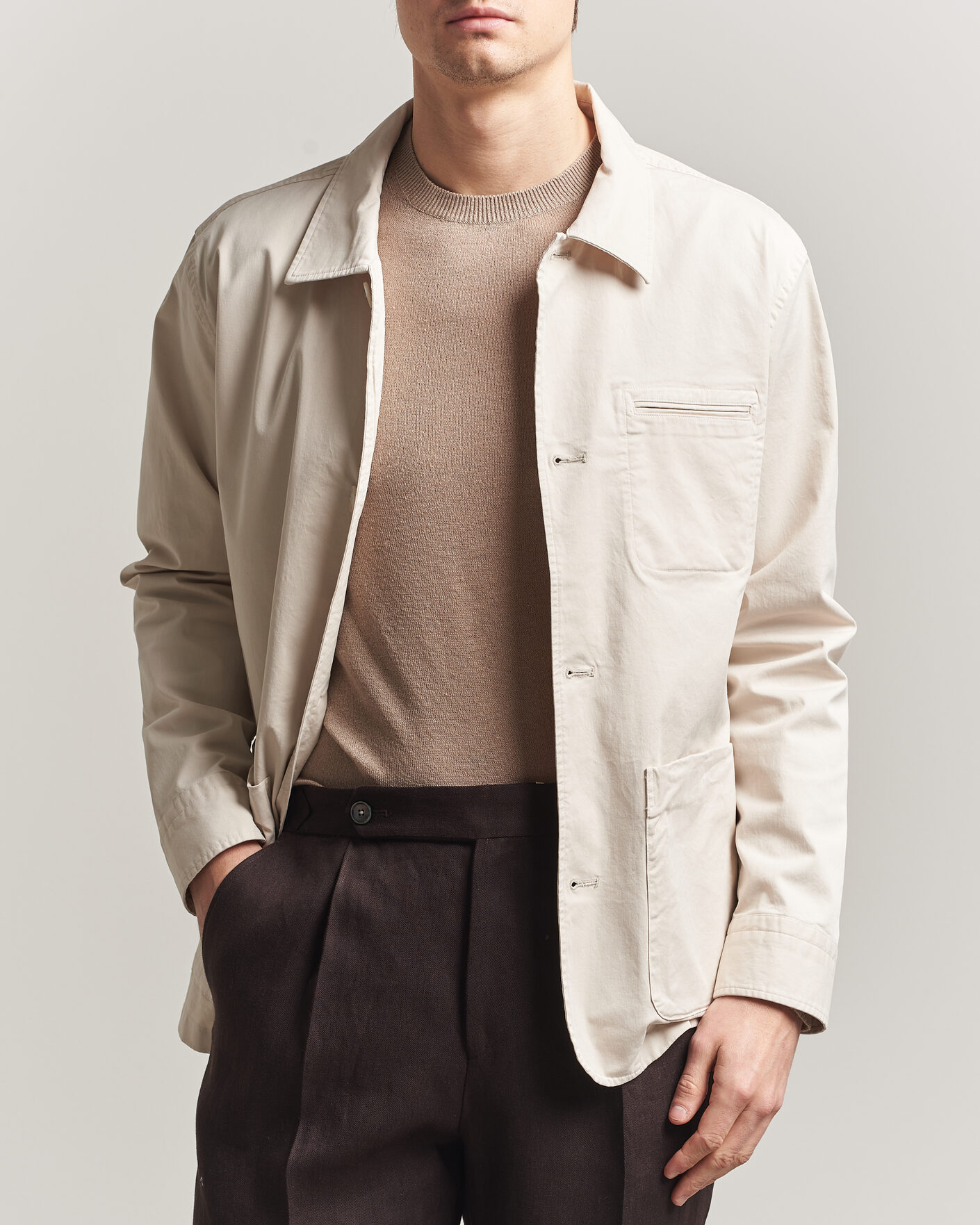 - En passpolert brystlomme.