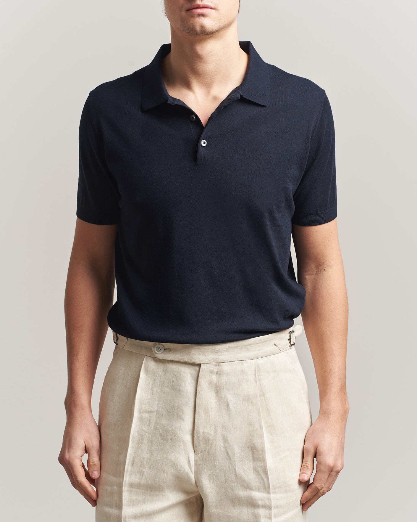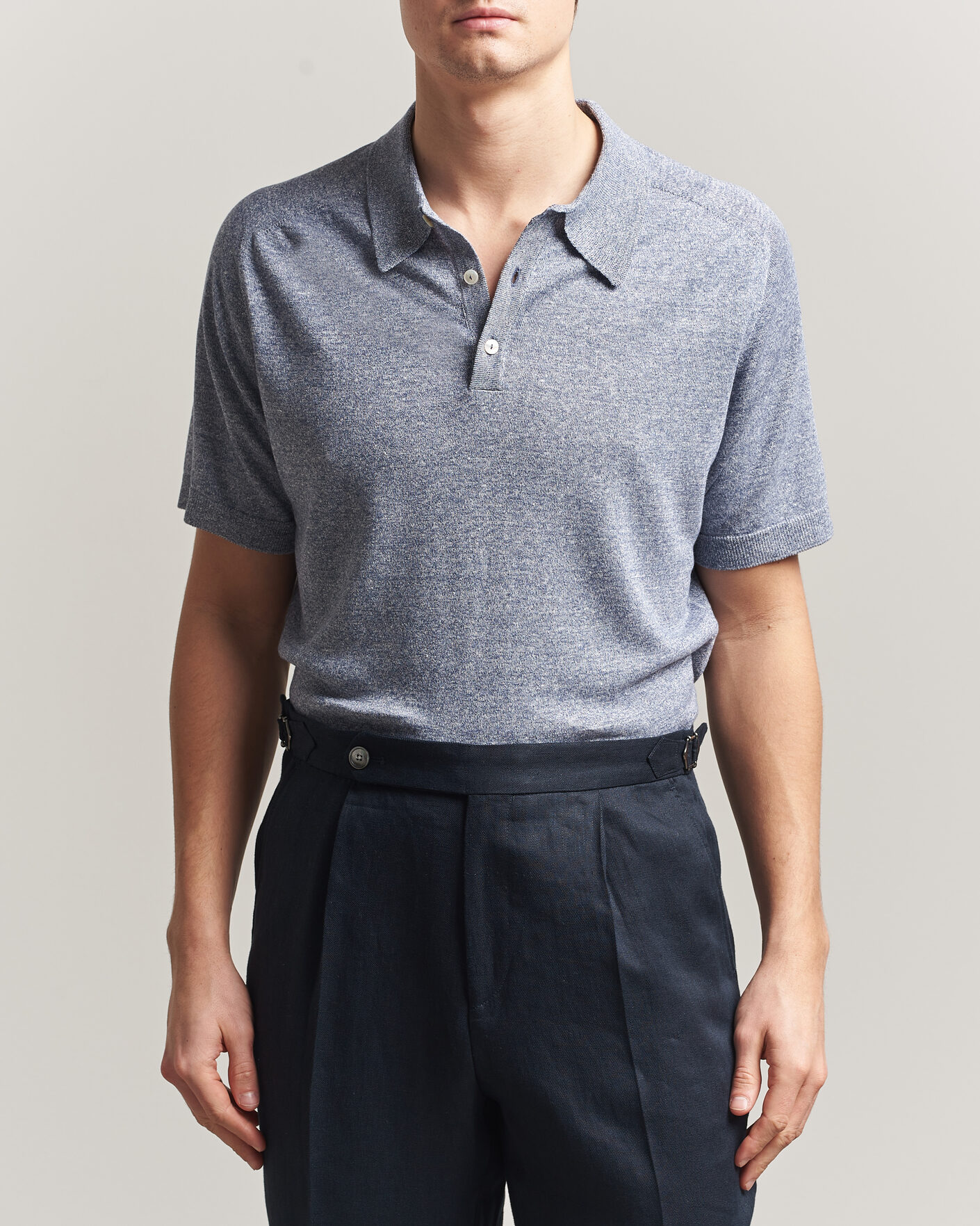 Short Sleeve Knitted Polo Light Blue