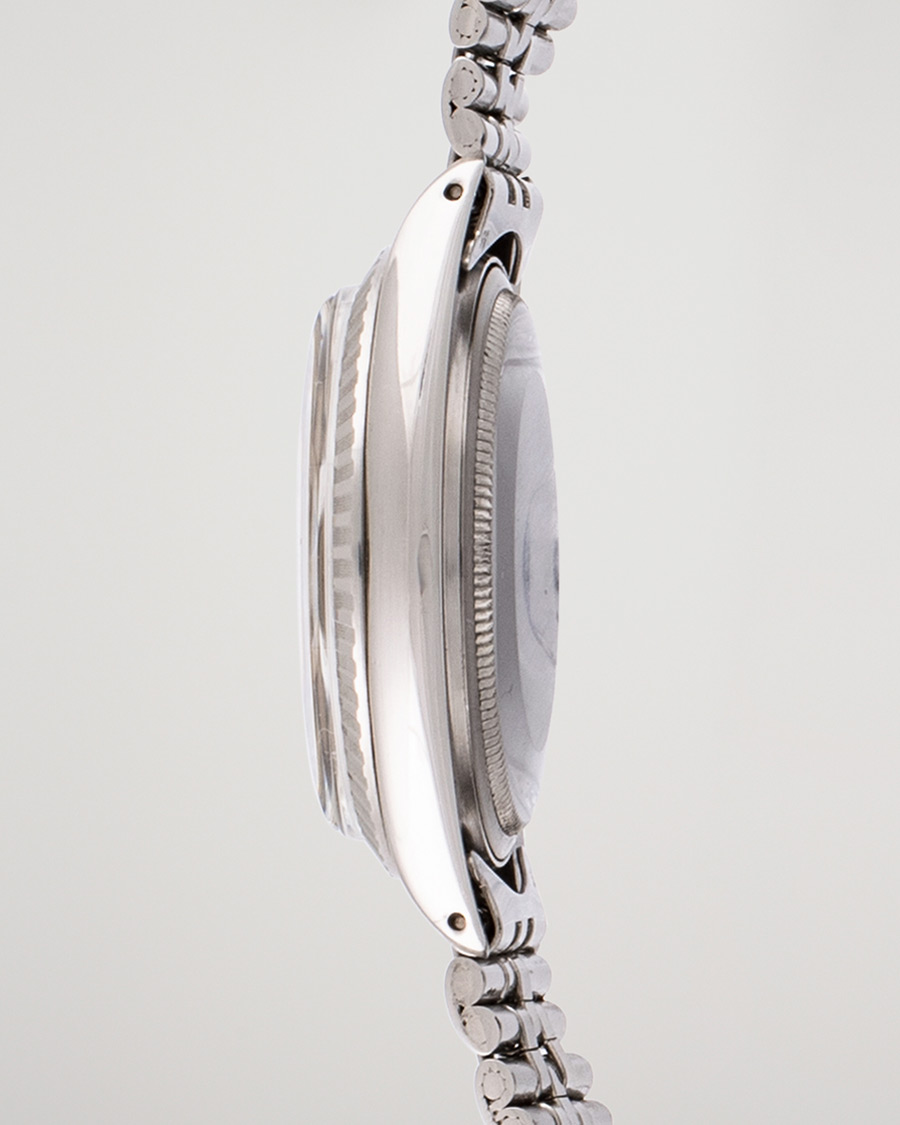 Rolex Datejust så dagens lys i 1945 og var verdens første vanntette kronometer med datovisning. Rolex Datejust er kanskje varemerkets mest ikoniske modell, med Rolex’ umiskjennelige oyster urkasse, den riflede kransen og den karakteristiske jubileumslenken som ble designet spesielt til denne modellen.