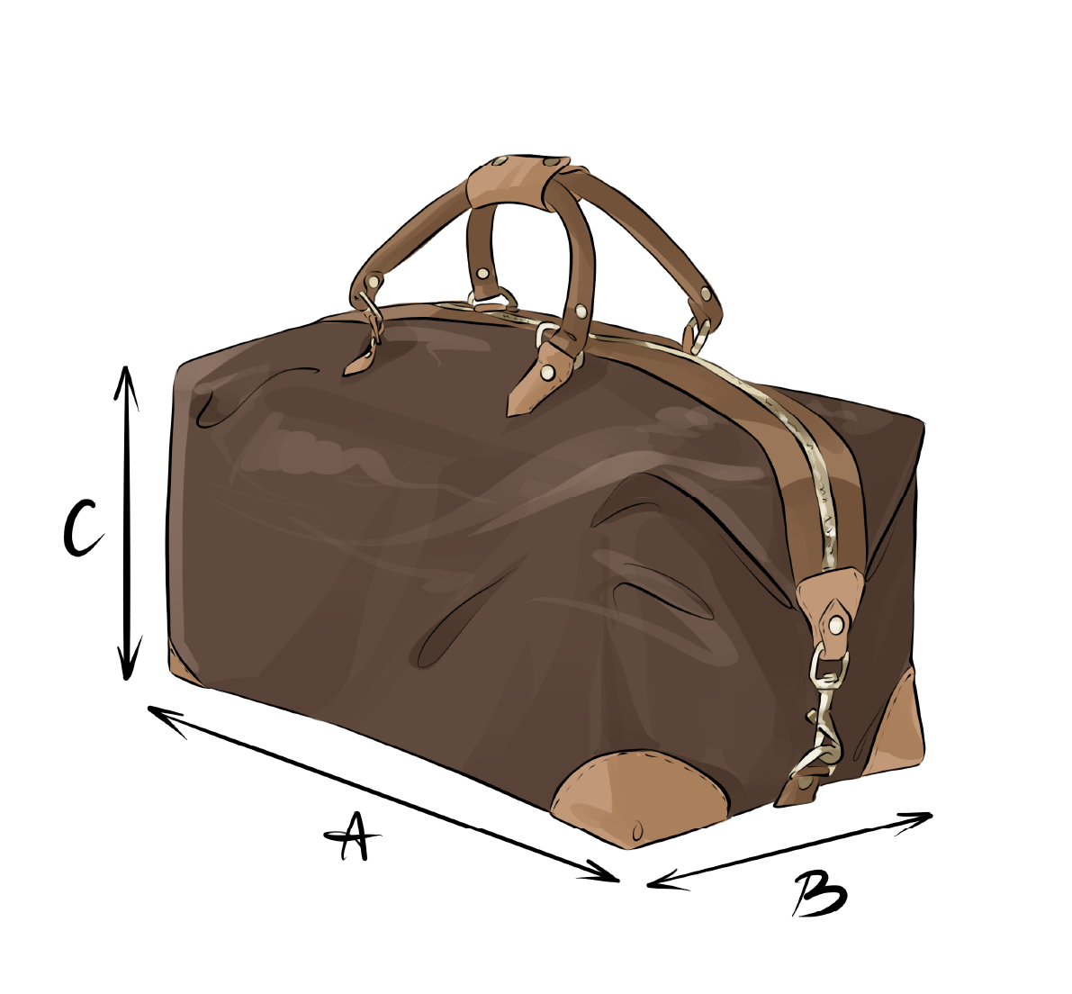 Vesker og assesoarerTa mål på utsiden. A: Bredde (cm) B: Dyp (cm) C: Høyde (cm) |